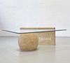 Modern ve şık tasarımıyla dikkat çeken üçgen şekilli orta sehpa, mekanınıza estetik bir dokunuş katıyor