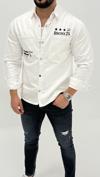İki İplik Kumaş Baskılı Gömlek - Beyaz - Image 1