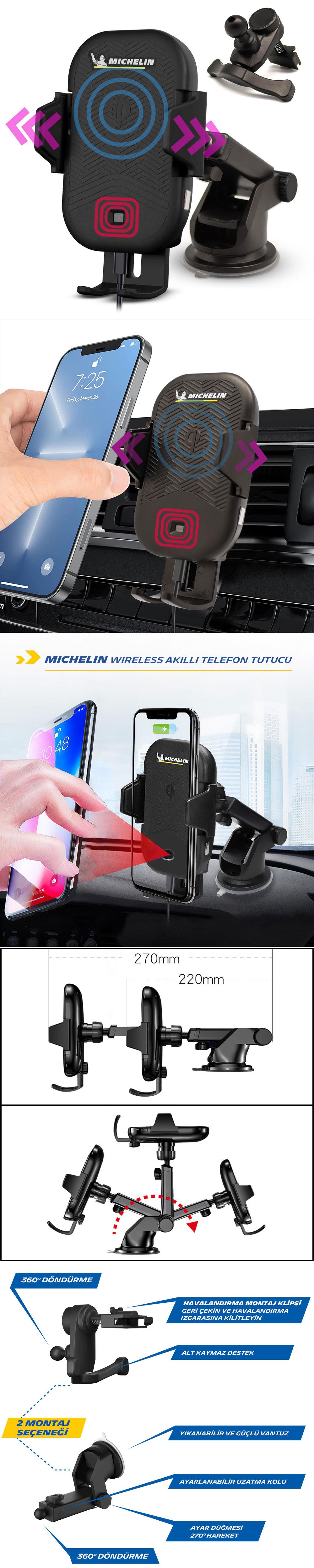 · Michelin MC33368 Wireless Telefon Şarj Cihazı ve Dokunmatik Akıllı Telefon Tutucu