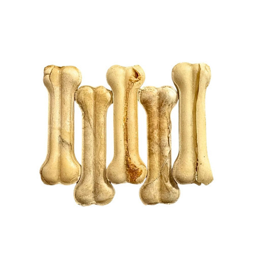 5 adet 15 cm beyaz press çiğneme kemiği. Bazı kemiklerin içlerinde sarılı şekilde kurutulmuş tavuk eti bulunabilir. Kemiklerin şekillerindeki uyumsuzluk ve bozukluk sebebiyle ekonomik gruptadır. Şeklen bozukluklar dışında hiçbir sorunları yoktur. Dana derisinden üretilmesi sebebiyle deri kokusu yoğunluğu olabilir.
