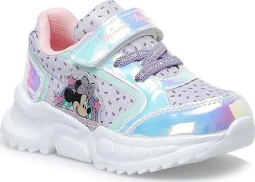 Lisanslı Minnie Mouse karakteri ile süslenmiş, çocukların sevdiği çizgi film kahramanını ayaklarına taşıyan parlak lila renkli spor ayakkabı