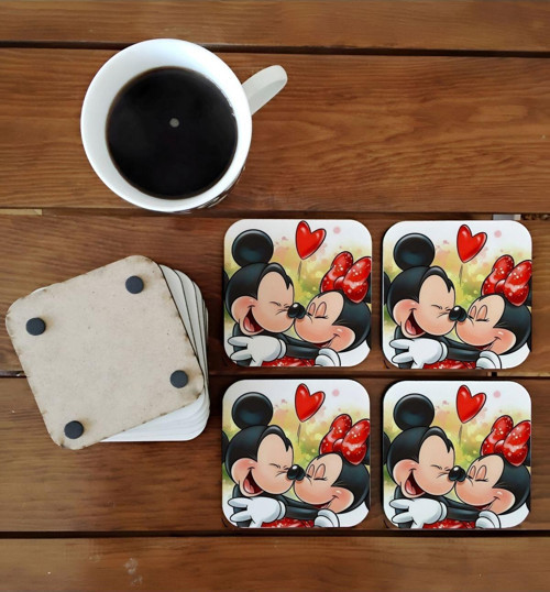 - Mickey ve Minnie Mouse'un sevimli öpücük çizgi karakterleriyle süslenmiş, çocukların ve yetişkinlerin keyifle kullanabileceği kişisel bir hediye.; - %100 doğal ahşap malzemeden üretilmiş olup, dayanıklılığı ve estetik görünümü ile dikkat çeker.; - Kişiye özel tasarım seçeneği sayesinde, sevdikleriniz için anlamlı ve özgün bir hediye alternatifi sunar.; - Kare şekliyle modern ve şık bir görünüm sergileyen bu bardak altlıkları, mutfak dekorasyonunuza kolayca uyum sağlar.; - Dört adet bardak altlığı içeren set halinde sunulur; böylece birden fazla kullanım için idealdir.
