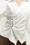 Ürün Açıklaması: Pamuklu, katlı yakalı gömlek.; Yanları büzgülü, bele oturan tasarım düğmeli.; Ürün İçeriği: %67 Pamuk %28 Poliamid %5 Elastan Ürün Beden Tablosu: Beden Boy Bel Ç.; Gögüs Ç.; Omuz Kol XS 62 cm 74 cm 90 cm 14 cm 59 cm S 62 cm 78 cm 94 cm 14 cm 59 cm M 62 cm 82 cm 98 cm 14 cm 59 cm L 62 cm 86 cm 102 cm 14 cm 59 cm Model Ölçüsü: Boy:1.74 cm Kilo: 50 kg ( Model XS Beden ) Yıkama Talimatı: Makinede Maks.; 30 C 'de Yıkayın.; Çamaşır Suyu Kullanmayın.; Düşük Isıda Ütüleyiniz.; Kuru Temizleme Yapılamaz.