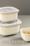 - Üçlü set halinde sunulan bu saklama kapları, farklı ihtiyaçlarınıza cevap verir ve kolayca saklama imkanı sağlar.