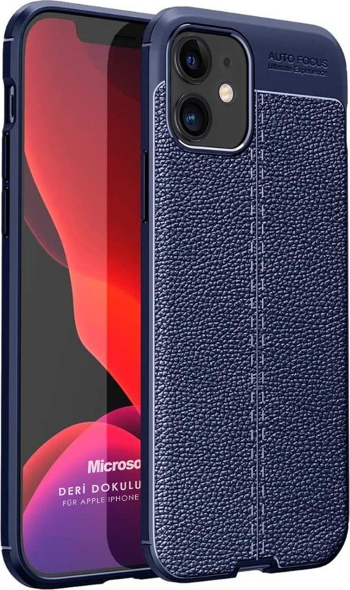 Microsonic Apple iPhone 12 Kılıf Deri Dokulu Silikon Lacivert