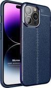 Microsonic Apple iPhone 14 Pro Max Kılıf Deri Dokulu Silikon Lacivert
