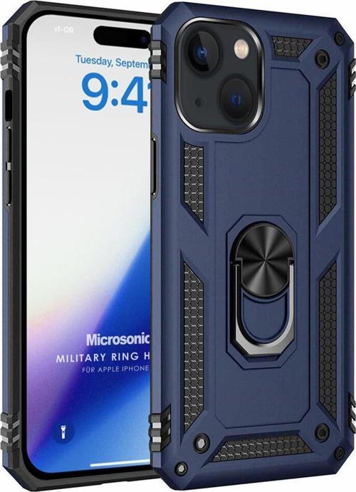 Microsonic Apple iPhone 15 Kılıf Military Ring Holder Lacivert
