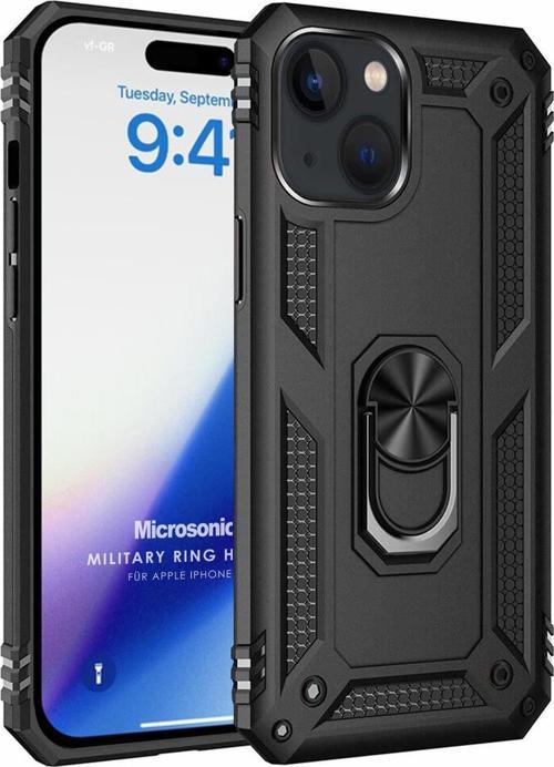Microsonic Apple iPhone 15 Kılıf Military Ring Holder Siyah