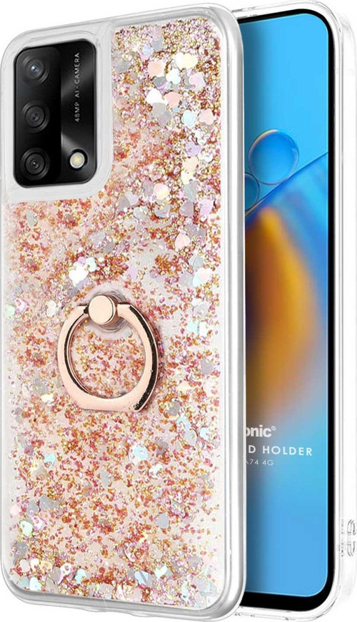 Microsonic Oppo A74 4G Kılıf Glitter Liquid Holder Gold