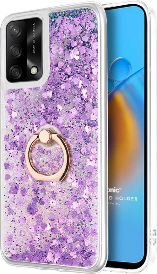 Microsonic Oppo A74 4G Kılıf Glitter Liquid Holder Mor