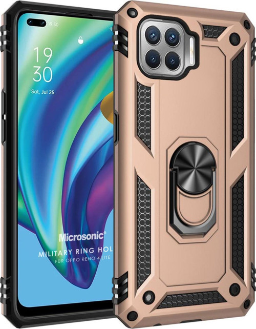Microsonic Oppo Reno 4 Lite Kılıf Military Ring Holder Gold