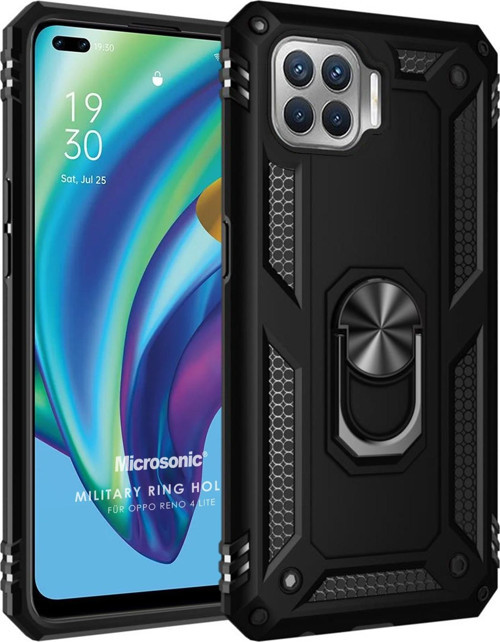 Microsonic Oppo Reno 4 Lite Kılıf Military Ring Holder Siyah