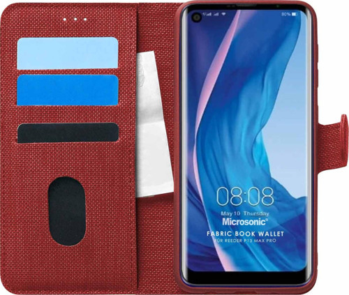 Microsonic Reeder P13 Blue Max Pro Kılıf Fabric Book Wallet Kırmızı