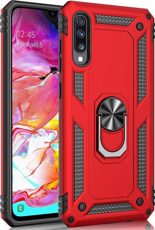 Microsonic Samsung Galaxy A70 Kılıf Military Ring Holder Kırmızı
