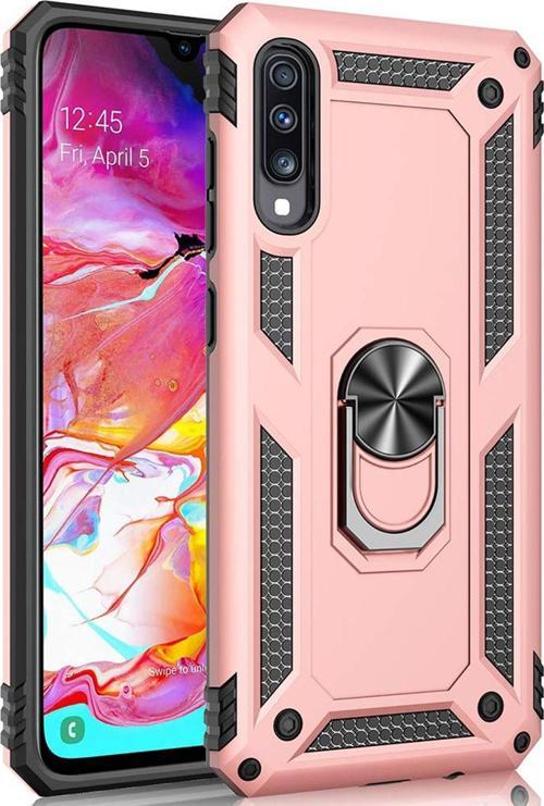 Microsonic Samsung Galaxy A70 Kılıf Military Ring Holder Rose Gold