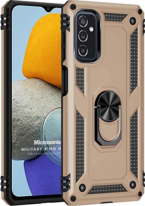 Microsonic Samsung Galaxy M23 Kılıf Military Ring Holder Gold