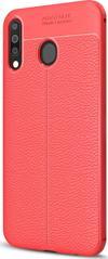 Microsonic Samsung Galaxy M30 Kılıf Deri Dokulu Silikon Kırmızı