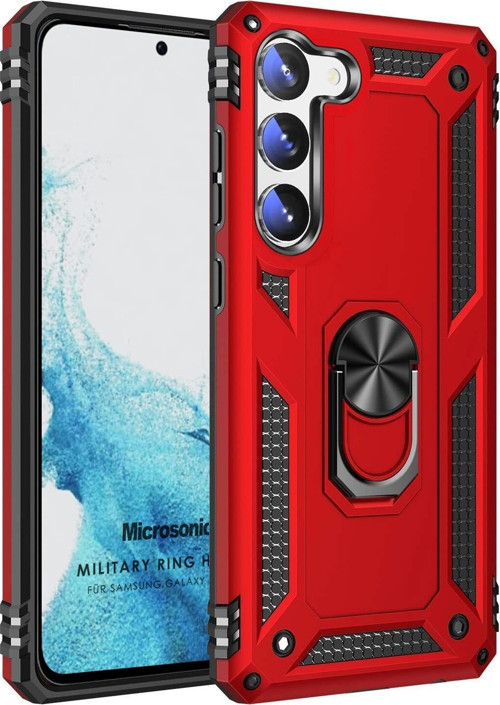 Microsonic Samsung Galaxy S23 Kılıf Military Ring Holder Kırmızı