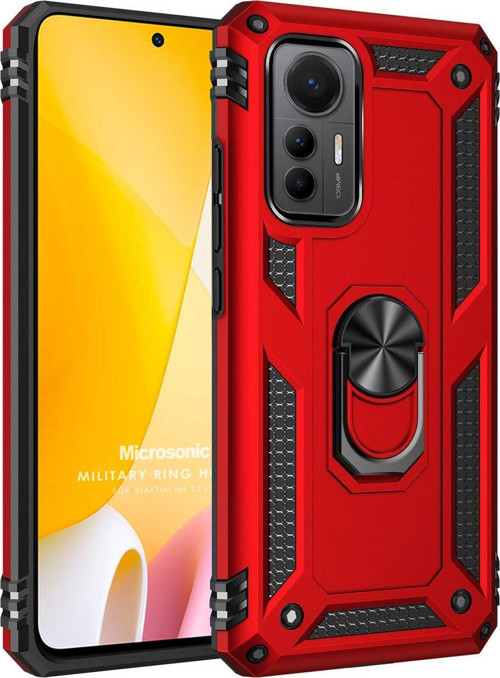 Microsonic Xiaomi Mi 12 Lite Kılıf Military Ring Holder Kırmızı