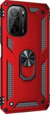 Microsonic Xiaomi Poco F3 Kılıf Military Ring Holder Kırmızı