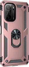 Microsonic Xiaomi Poco F3 Kılıf Military Ring Holder Rose Gold