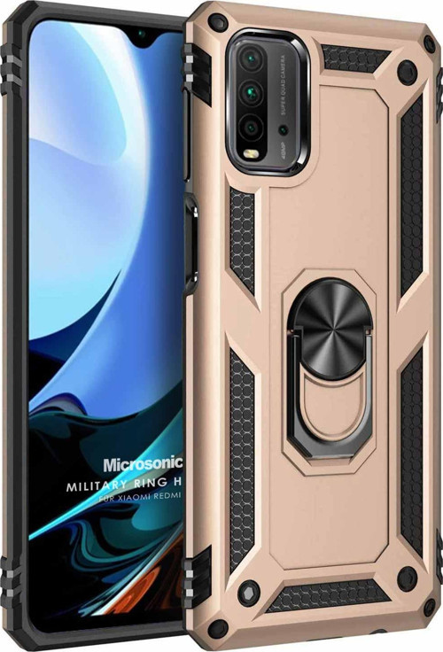 Microsonic Xiaomi Redmi 9T Kılıf Military Ring Holder Gold