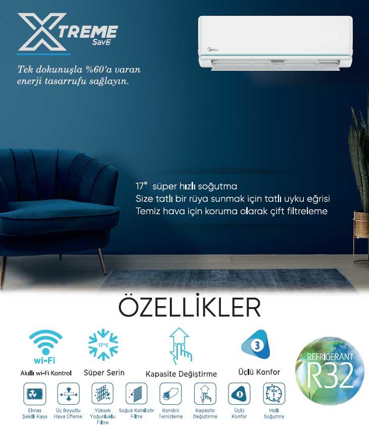 Midea Xtreme 12.000 BTU Wi-Fi İnverter Duvar Tipi Klima,