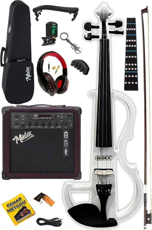 Midex RCZ-606WH-AMP Elektro Keman Taşınabilir Şarjlı Amfi Çanta Full Set Beyaz