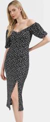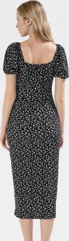Elbisenin yüksek kaliteli örme kumaşı, gün boyu nefes alabilir ve rahat bir his sunar. Kare yaka ve balon kolları ile şık ve feminen bir görünüm yaratırken, vücuda oturan bodycon kalıbı da zarif bir duruş sağlar. 122 cm ön boyuyla midi boy uzunluğu, her boyda kadına mükemmel uyum sağlar. Yırtmaç detayı ise rahat hareket etmenizi sağlar. Bu şık elbiseyle hem günlük hayatınızda hem de özel davetlerinizde rahatlıkla kullanabilirsiniz.