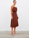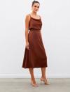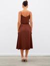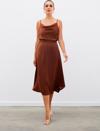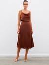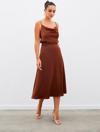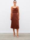 Yüksek bel, arka fermuarlı, astarsız, midi boy saten etek.
