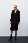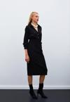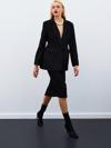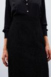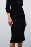 Yüksek bel, arka fermuarlı, arka yırtmaçlı, kırçıllı desen, midi boy tüvit etek.
