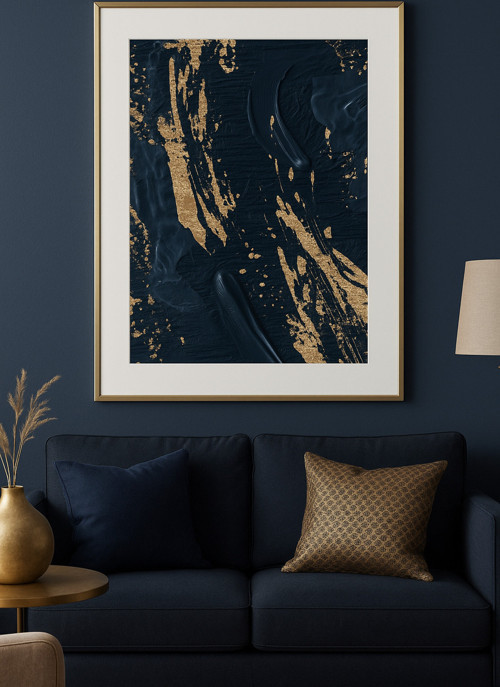 Sayetablo Midnight Gold Abstract – Gerçek Cama Baskı Gold Alüminyum Metal Çerçeveli Tekli Modern Tablo