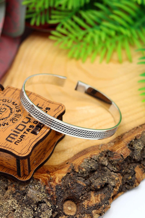 Midyat Nurtaş Gümüş 3 Sıra Hasır Model 925 Ayar Saf Gümüş Unisex Hasır Bilezik 201024400