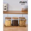 MİEN Akasya Ahşap Standlı 3’lü Çizgili Cam Baharatlık Seti – Kare – 750 ml