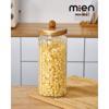 Mutfakta hem şıklığı hem de işlevselliği bir araya getiren Mien 1300 ml Borosilikat Cam Kavanoz, doğal akasya ağacından yapılmış kapak tasarımı ve zarif çizgili cam yüzeyiyle estetik bir görünüm sunar.