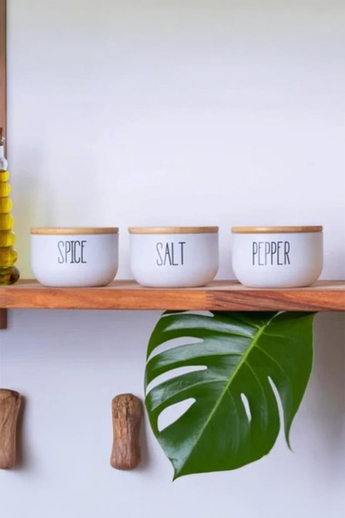 Doğal bambu vakumlu kapaklar, içerideki aromayı hapsederken; baharatlarınızın nemden ve hava ile temastan korunmasını sağlar. Modern ve minimal etiket detayları (Spice, Salt, Pepper) ile hem kullanışlı hem de estetik bir sunum imkânı sunar.