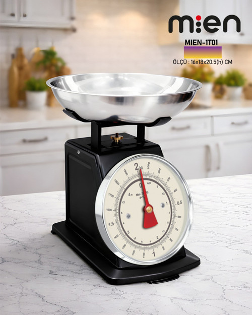 MİEN Mekanik Mutfak Terazisi 2 Kg – Paslanmaz Çelik Hazneli, Analog Klasik Terazi