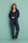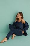 Mihra markasının şıklığı ve konforu bir araya getiren kadife 3'lü pijama takımı, rahat bir uyku deneyimi sunar.
