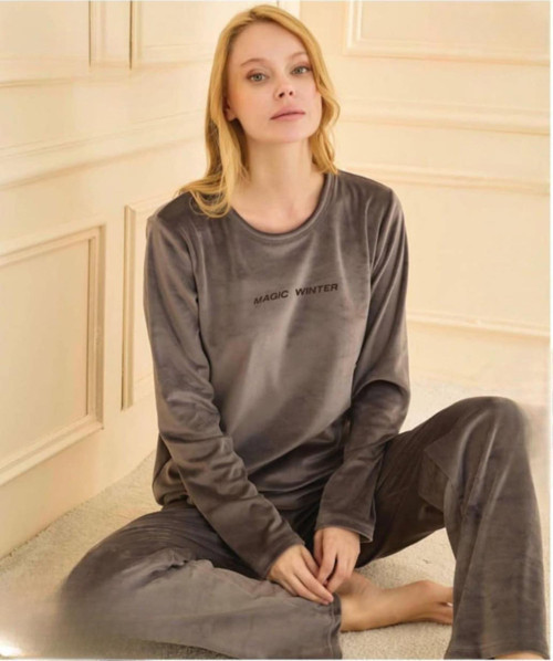 Mihra Kadın Kışlık Bisiklet Yaka Kadife Pijama Takımı 13166FÜ - 1 Adet