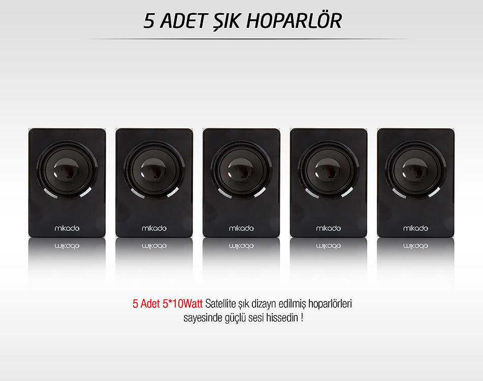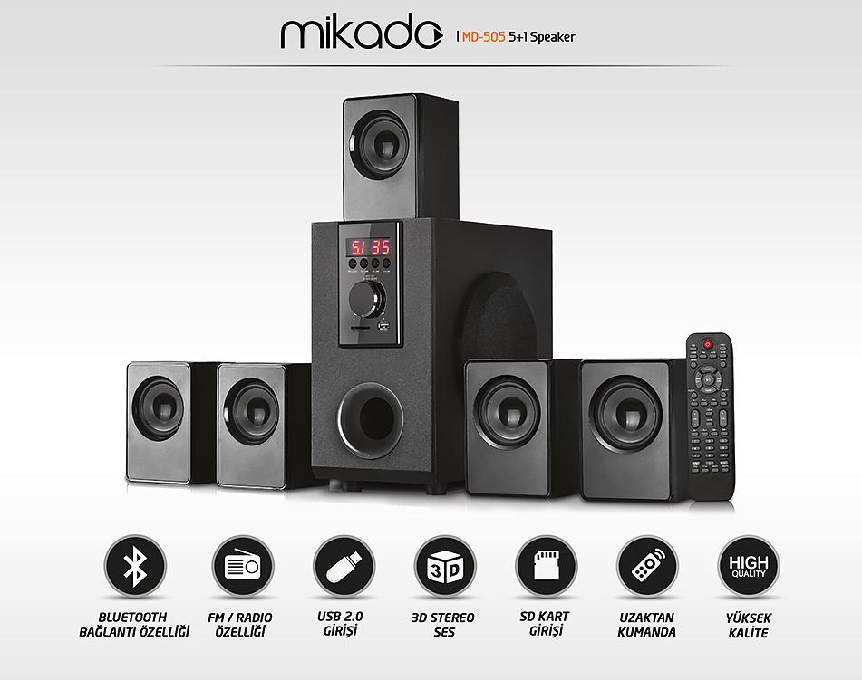 Mikado MD-505 5+1 Usb+SD+FM Destekli Bluetooth Speaker ; Özenle dizayn edilmiş 5 adet satellite hoparlör sayesinde gücünüze güç katın.