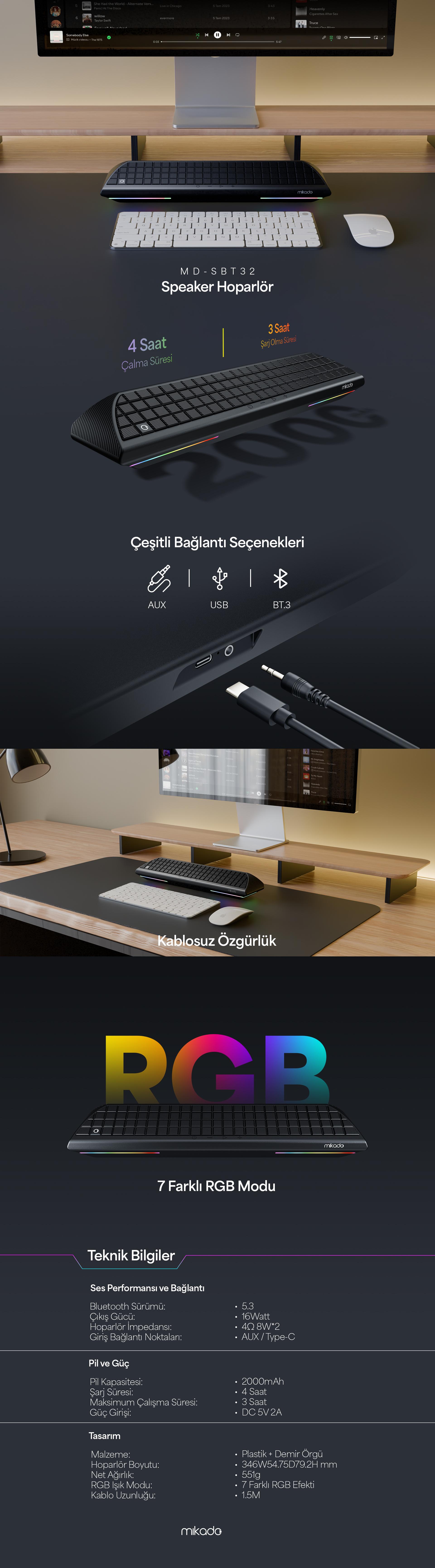 | İşlev | Bluetooth/RGB/AUX GİRİŞİ |