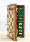 MIKNATIS TAŞLI AHŞAP KATLANABİLİR KUTULU SATRANÇ OYUNU 40 CMÜrün ÖzellikleriMıknatıs taşlı ahşap katlanabilir kutulu satranç oyunu, zarif tasarımı ve büyük boyutuyla profesyonel oyun keyfi sunar. 40 cm boyutundaki geniş tahtasıyla rahat bir oyun alanı sağlar. Taşların altında yer alan güçlü mıknatıslar sayesinde oyun sırasında taşlar sabit kalır, bu da taş kaymasını önleyerek oyun konforunu artırır. Vernikli ahşap yüzeyi estetik bir görünüm kazandırırken dayanıklılığını da artırır. Katlanabilir kutu formu sayesinde satranç taşları iç kısımda düzenli şekilde saklanabilir, kolay taşınabilir ve yer kaplamaz. Ev, okul, ofis veya seyahatlerde kullanım için idealdir. Kaliteli işçiliğiyle uzun ömürlü bir oyun deneyimi sunar ve aynı zamanda dekoratif bir obje olarak da kullanılabilir.Paket İçeriği1 adet Mıknatıs Taşlı Ahşap Katlanabilir Kutulu Satranç Oyunu 40 Cm