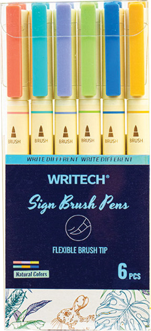 WRITECH W-827 FIRÇA TİP NATURAL 6 RENK KEÇELİ KALEM - 6'LI