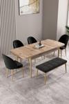 Milas Atlantik Çam 80x132 Açılabilir Mdf Masa Yemek Odası Takımı, Mutfak Takımı 4 Sandalye, 1 Bench