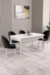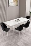 Milas Beyaz 80x132 Açılabilir Mdf Masa Yemek Odası Takımı, Mutfak Takımı 4 Adet Sandalye
