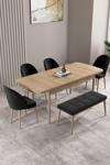 Asaella Mobilya Milas Meşe Desen 80x132 Açılabilir Mdf Masa Yemek Odası Takımı, Mutfak Takımı 4 Sandalye, 1 Bench
