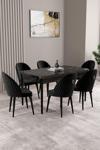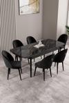 Asaella Mobilya Milas Siyah Mermer Desen 80x132 Açılabilir Mdf Masa Yemek Odası Takımı,Mutfak Takımı 6 Adet Sandalye