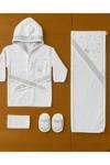 - 0-2 yaş arası kız bebekler için özel olarak tasarlanmış, 4 parçadan oluşan bornoz seti.