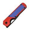 Rahat bir tutuş için iyi pahlanmış kenarları olan klasik kırmızı ve mavi renk kombinasyonlu G10 sapına sahiptir.