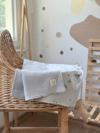 Müslin bebek battaniyemizi puset örtüsü gibi farklı alanlarda kullanabilirsiniz.